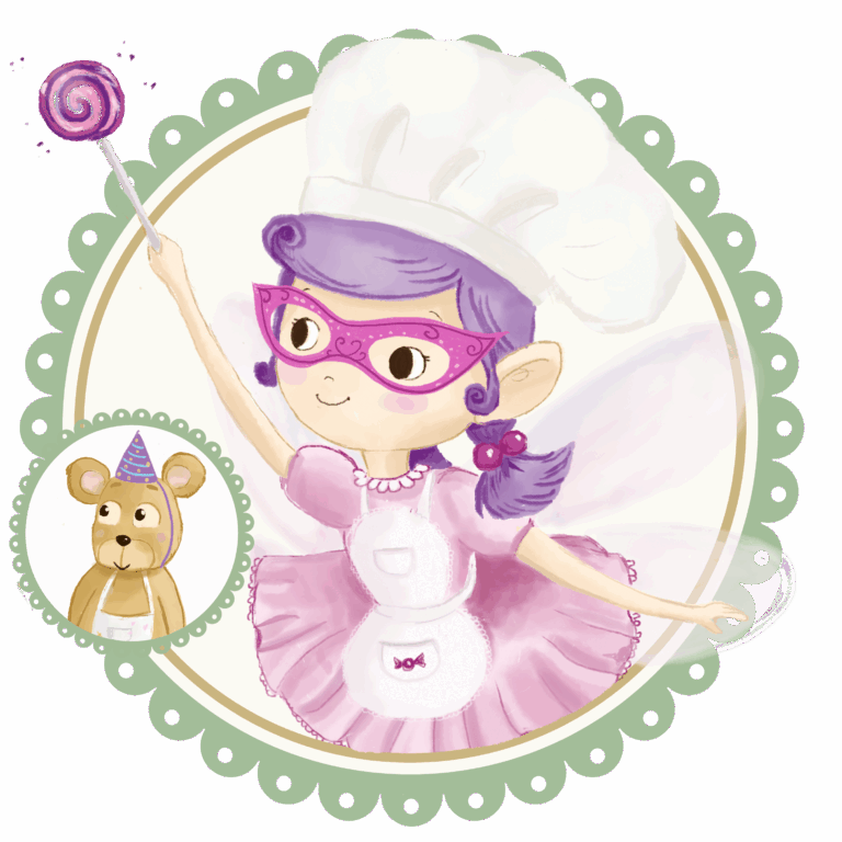 Fata Zuccherina, insieme al suo instancabile aiutante Pasticcino, è già all’opera in cucina.