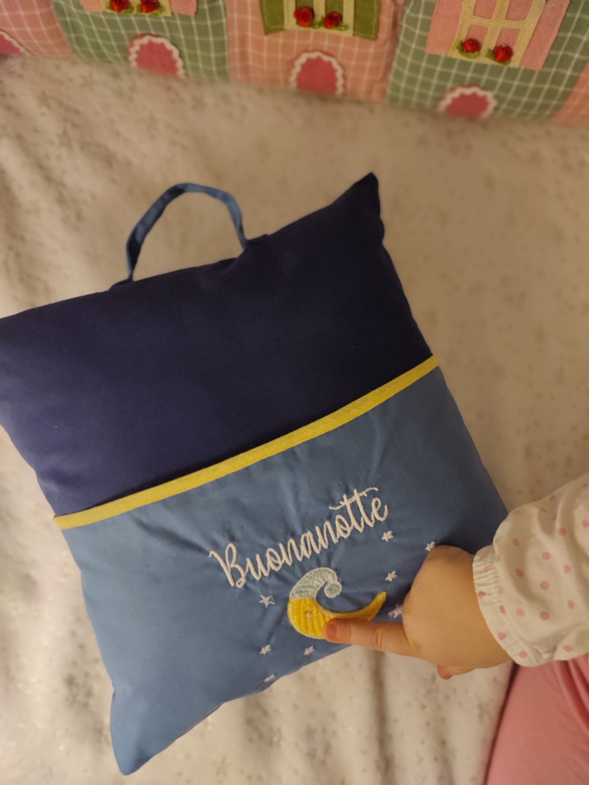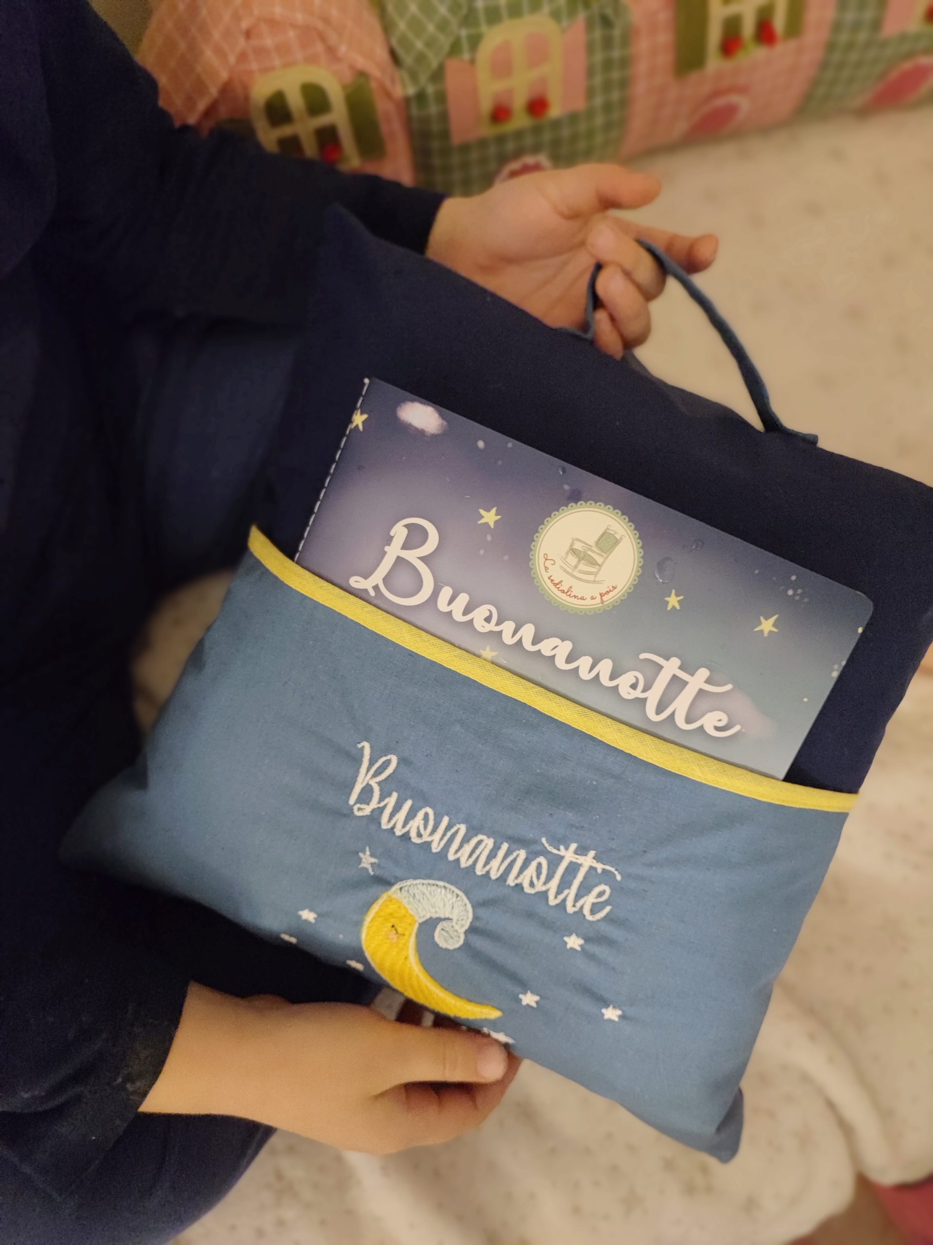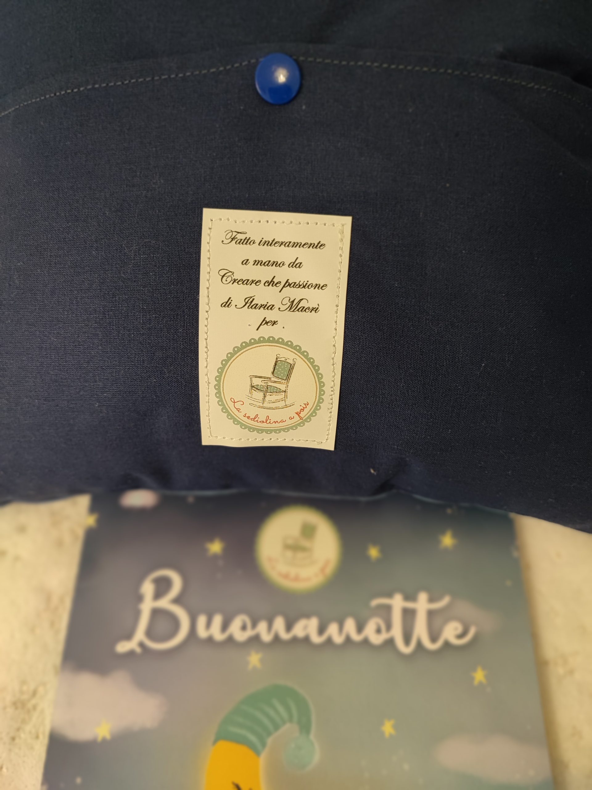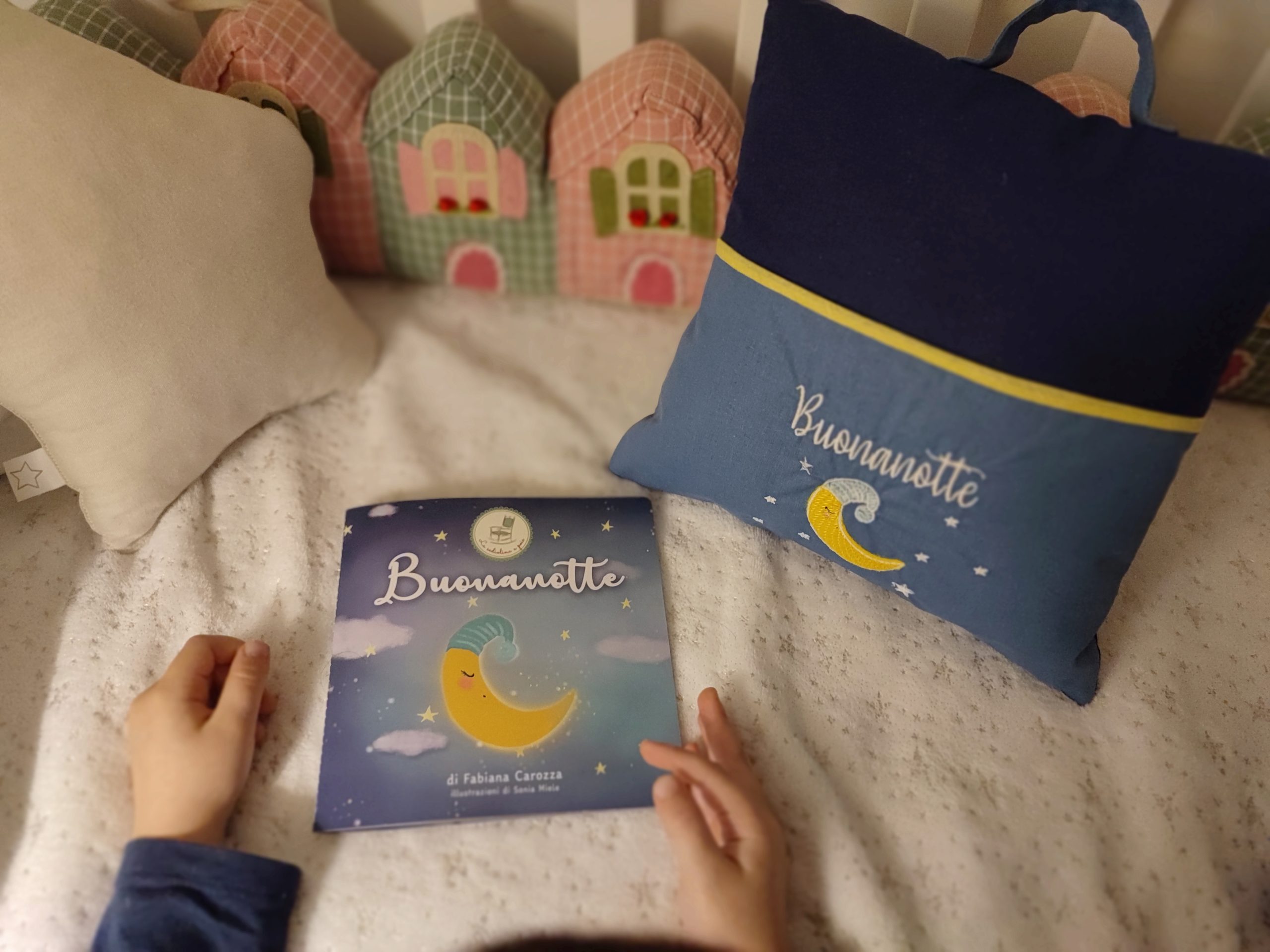 Puoi acquistare anche il cuscino abbinato al suo libricino Buonanotte: una dolce filastrocca che cullerà i bimbi con i suoi teneri versi in rima qui